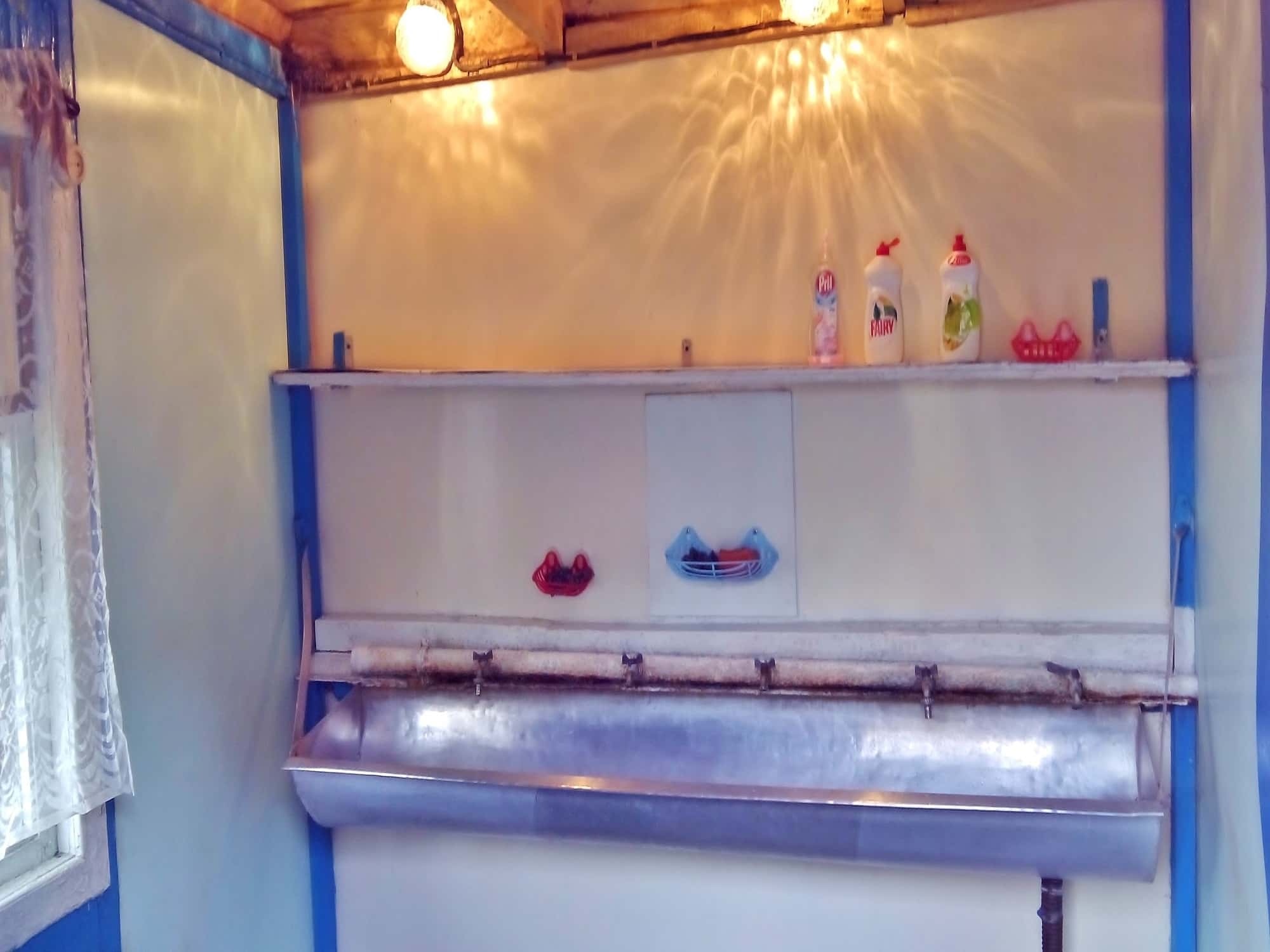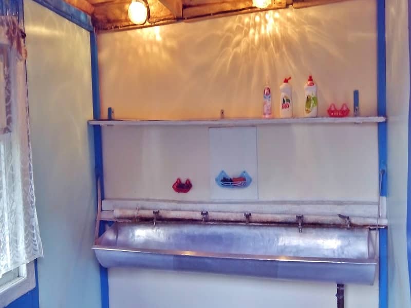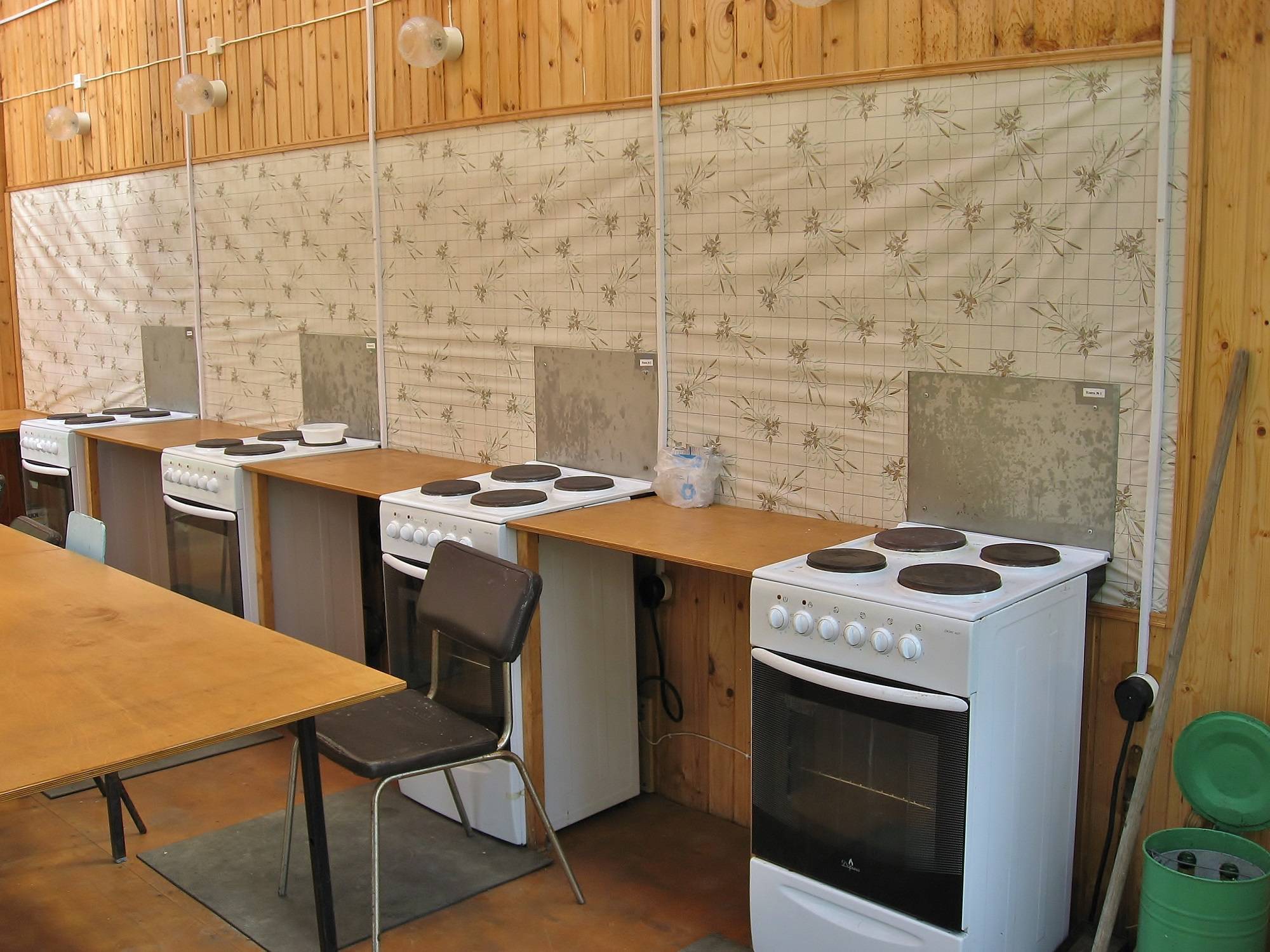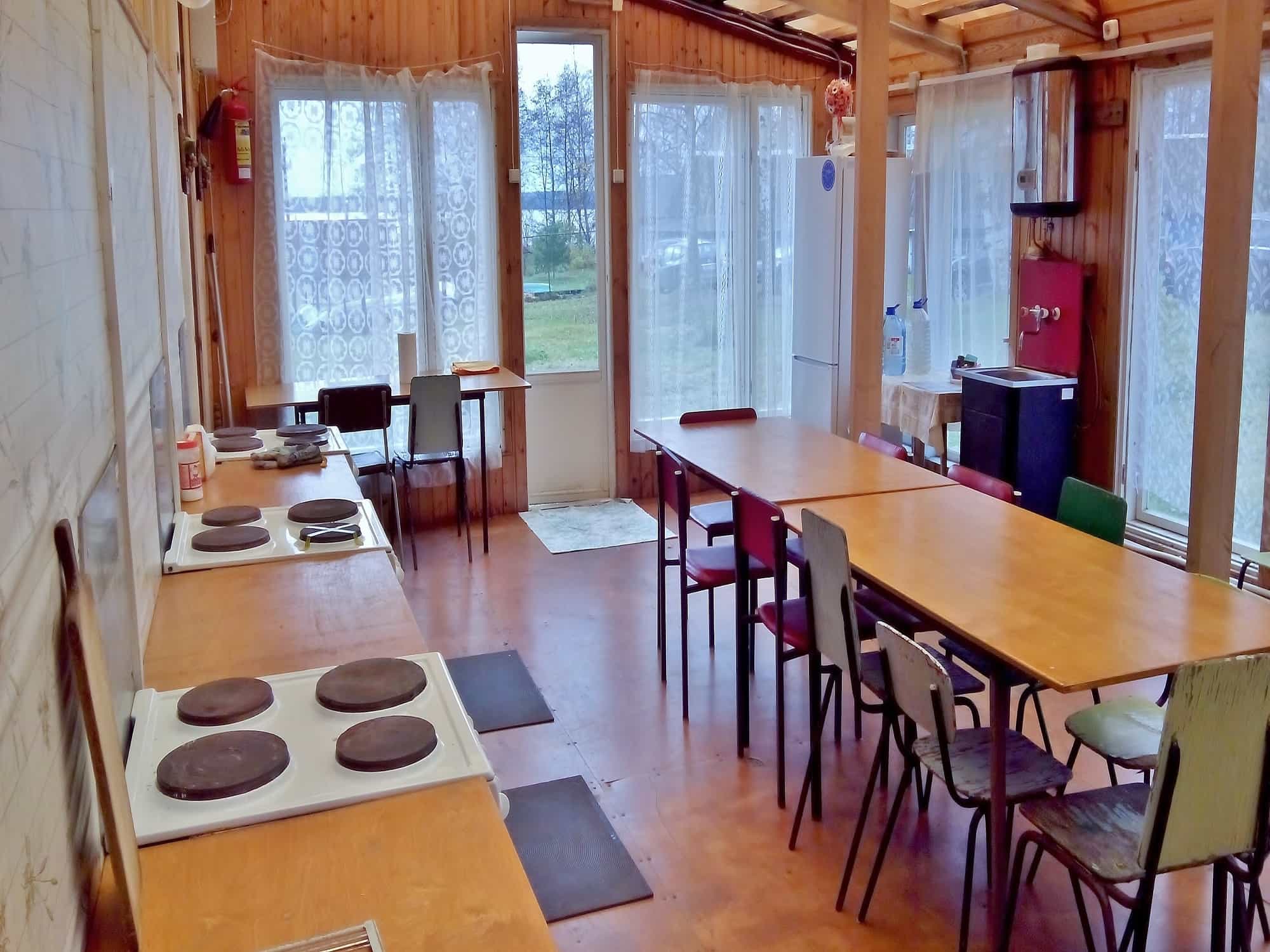 в отдельном доме оборудованна кухня с электроплитами а также горячая вода для мытья посуды
